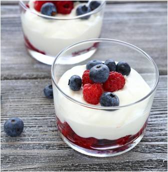 Postrezite s svežim ali kuhanim jagodičjem (jagodičje skupaj z limoninim sokom in sladkorjem na hitro zavrite in kuhajte 3 minute).