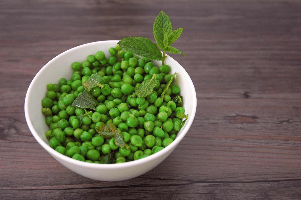 Grah stresite v posodo za kuhanje. Meto oplaknite, ji obtrgajte lističe in jih položite na grah. Zavrite vodo in z njo zalijte grah, toliko, da bo komaj pokrit. Posodo pokrijte, postavite na vroče kuhališče, počakajte da zavre in grah skuhajte do mehkega. Vmes grah večkrat poskusite, čas kuhanja ne bi smel bit daljši od par minut. Kuhan grah, skupaj z meto takoj stresite na cedilo in oplaknite s hladno vodo.