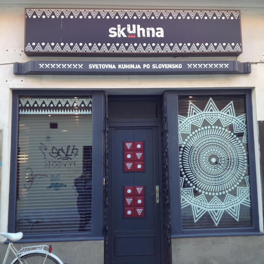 Skuhna ponuja okusno domačo in avtentično kulinariko Afrike, Azije in Južne Amerike. Jedi pripravljajo in predstavljajo migranti iz posameznih držav, ki so se (večina zaradi ljubezni) znašli v Sloveniji.